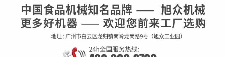 广州旭众食品机械有限公司是一家集科研开发,生产设计,营销服务为一体的现代化生产企业。现代化生产车间,精湛制造技术,所产机械历经市场重重考验,不断赢得海内外客户的赞誉。