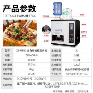 全自动商用快速出面电动素面湿面M500台式制面机器,20秒全自动出面,全程无需看管。一键出面,面做好,自动停。均匀滴漏加水系统,水面比例把握更好。自动滴漏加水系统,运作过程加水更均匀,适量控水,面条更有嚼劲。
