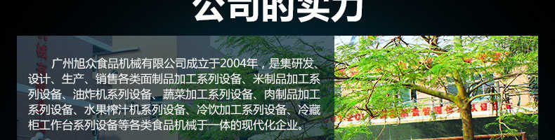 广州旭众食品机械有限公司是一家集科研开发,生产设计,营销服务为一体的现代化生产企业。现代化生产车间,精湛制造技术,所产机械历经市场重重考验,不断赢得海内外客户的赞誉。