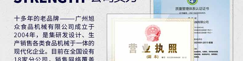 广州旭众食品机械有限公司是一家集科研开发,生产设计,营销服务为一体的现代化生产企业。现代化生产车间,精湛制造技术,所产机械历经市场重重考验,不断赢得海内外客户的赞誉。